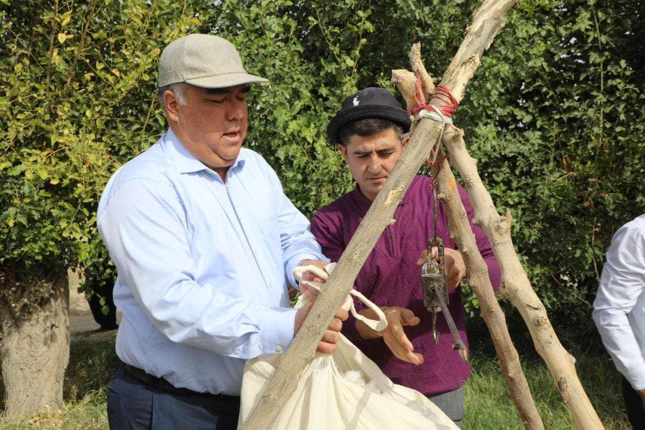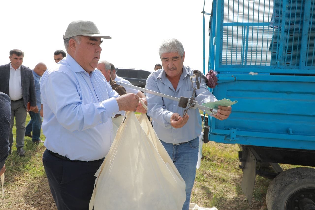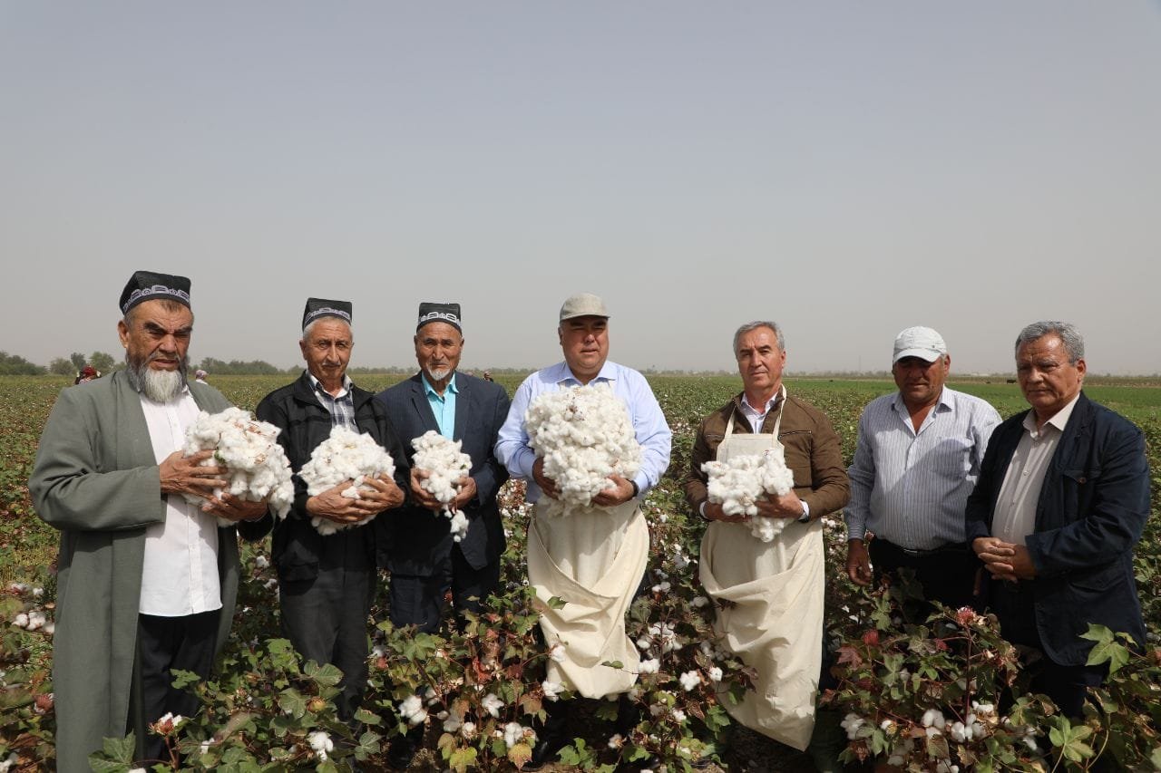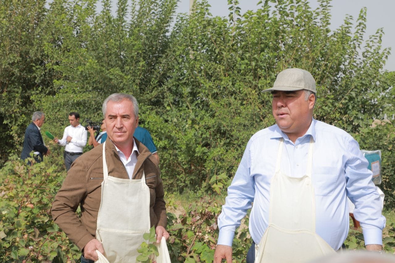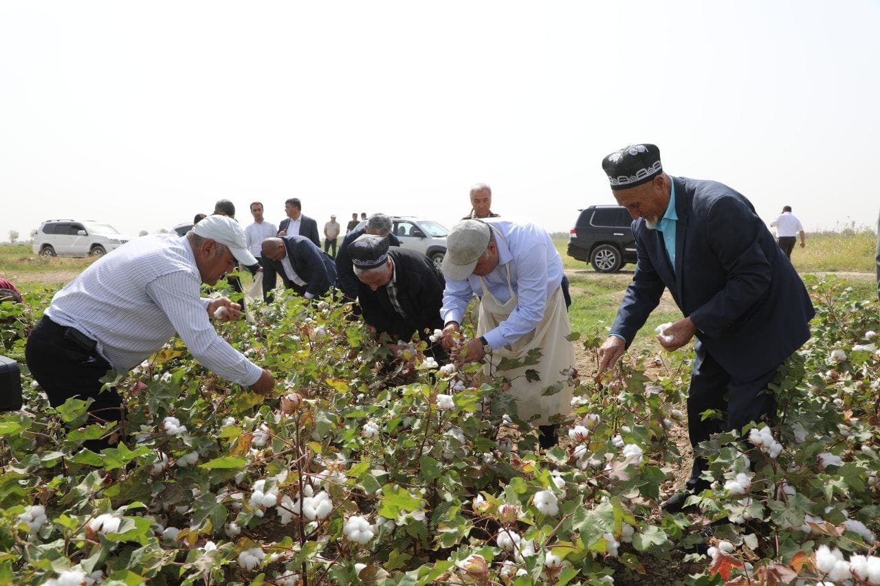 В начале рабочей поездки председатель ознакомился с деятельностью производственного кооператива «Нуртемур». Руководство сообщило, что в текущем году в этом кооперативе было посеяно 50 гектаров хлопчатника. Ежедневно более 100 рабочих заняты сбором хлопка.