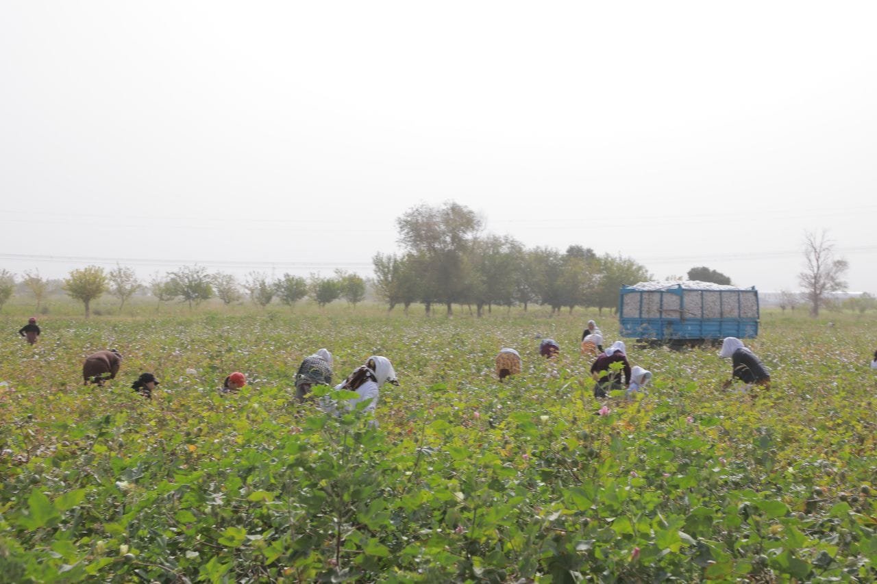 Всего, согласно официальным данным руководства района, в этом году хлопком засеяно 10790 гектаров земли. Из общего числа дехканских хозяйств, а их количество составляет 4670, хлопкосеющими являются 3260 хозяйств.