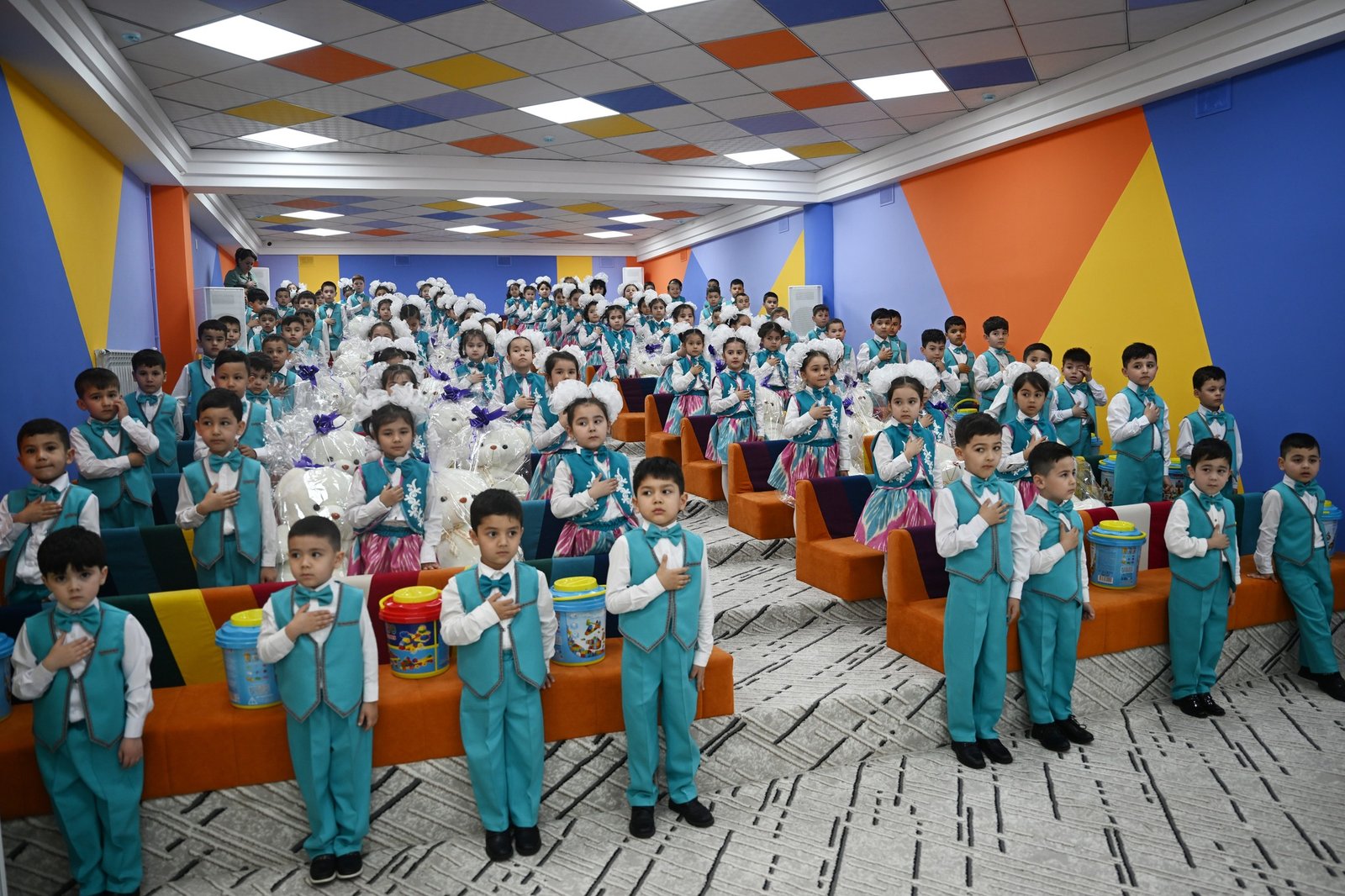 В новом дополнительном корпусе детского сада «Наврузи Истиклол» в 16 группах обучаются и воспитываются 480 детей, а в главном корпусе учреждения - 360 детей, в целом 840 детей.