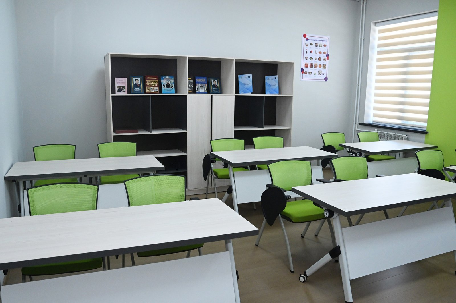 В центре наряду с изучением 5 видов профессий, в том числе мастера-электрика, сварщика, штукатура и мастера по установке солнечных панелей, налажено обучение корейского, английского и русского языков, каждый слушатель после окончания учёбы получает международный сертификат. Также в здании размещаются сварочные, отделочные цеха и склад для хранения электрооборудования.