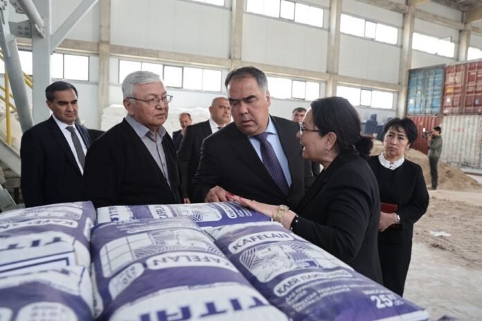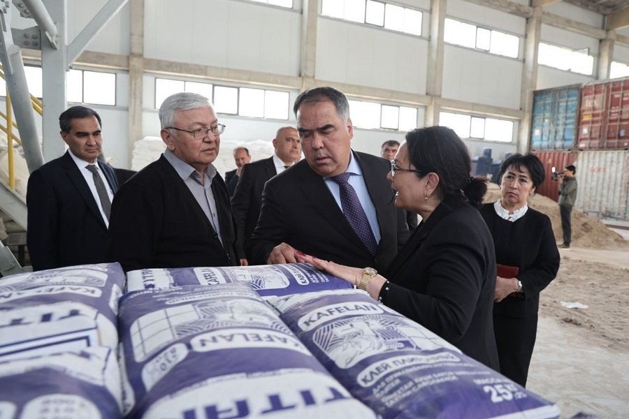 В промышленной зоне города Гулистон продолжается строительство предприятия по выпуску строительных красок, с ходом которого ознакомился председатель Согдийской области Раджаббой Ахмадзода.