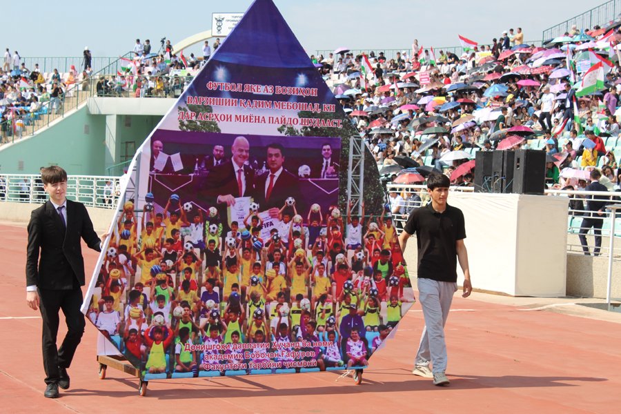 По случаю Всемирного дня футбола на главном стадионе в Худжанде состоялась спортивная программа юных футболистов, прошли различные игры с мячом, а также представителями сферы культуры была представлена культурная программа.