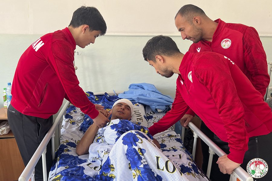 Национальная сборная Таджикистана навестила полузащитника кулябского клуба «Равшан» Джамшеда Максумова, находящегося на лечении в Национальном медицинском центре «Шифобахш» в Душанбе после серьезного ДТП.