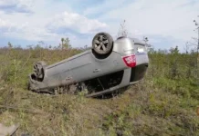 Он выехал на встречную полосу и, из-за высокой скорости, перевернулся на обочину дороги.